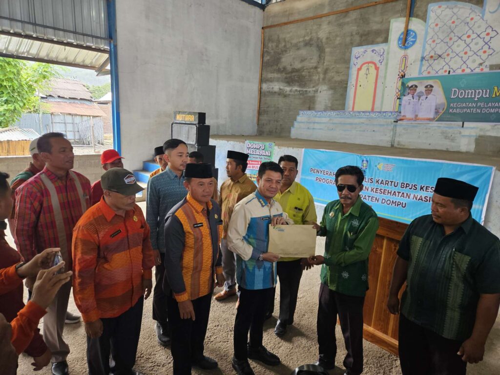 Dompu, Halo Bima — Tergabung dalam rangkaian kegiatan Dompu Melayani yang di prakarsai oleh Pemda Kab Dompu, BPJS Ketenagakerjaan Bima bersama Bupati Dompu Bambang Firdaus, serta Disnakertrans Kabupaten Dompu, menyerahkan secara simbolis kartu kepesertaan perlindungan jaminan sosial BPJS Ketenagakerjaan bagi 342 masyarakat pekerja rentan di Kecamatan Poja.